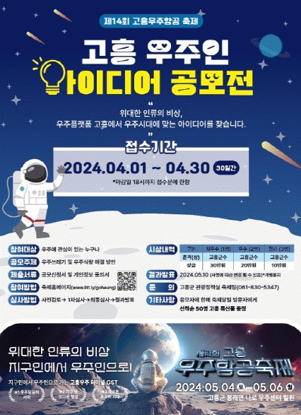 [ÀÚÄ¡Àú³Î]°íÈﱺÀº ¿À´Â 5¿ù 4ÀϺÎÅÍ 6ÀϱîÁö 3Àϰ£ ³ª·Î¿ìÁÖ¼¾ÅÍ ¿ìÁÖ°úÇаü ÀÏ¿ø¿¡¼ °³ÃÖÇÏ´Â Á¦14ȸ °íÈï¿ìÁÖÇ×°øÃàÁ¦ÀÇ °ü½ÉÀ» ³ôÀ̰í, ¿ìÁÖÇ×°ø Á߽ɵµ½Ã °íÈïÀÇ À̹ÌÁö¸¦ Á¤¸³ÇϰíÀÚ ¡®°íÈï ¿ìÁÖÀÎ ¾ÆÀ̵ð¾î °ø¸ðÀü¡¯À» °³ÃÖÇÑ´Ù.