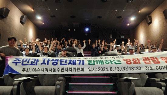 ¿©¼µ¿ ÁÖ¹ÎÀÚÄ¡À§¿øÈ¸(À§¿øÀå ¼ºÀö)´Â Áö³ 13ÀÏ, CGV¿©¼ö¿õõ¿¡¼ Áֹΰú ÀÚ»ý´Üü ȸ¿øµéÀÌ ÇÑÀÚ¸®¿¡ ¸ð¿© ¿µÈ °ü¶÷ Çà»ç¸¦ °¡Á³´Ù°í ¹àÇû´Ù.