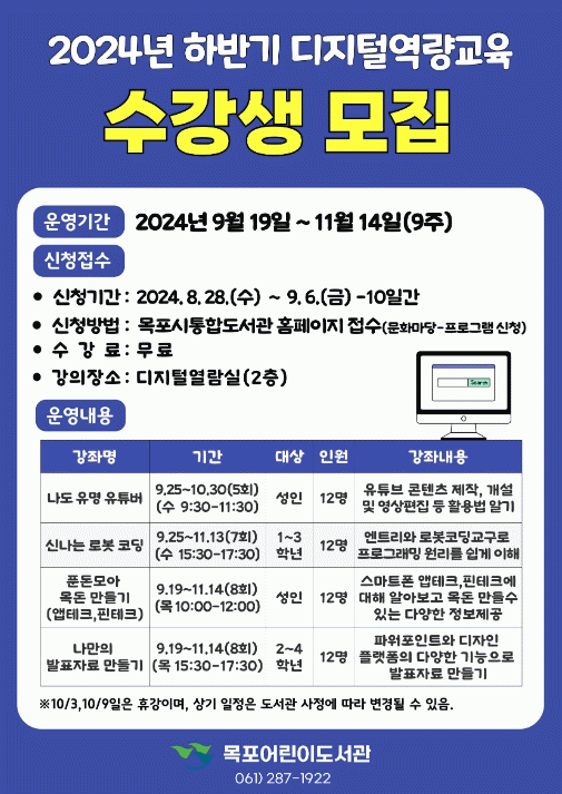 [20240827111442-88020][ÀÚÄ¡Àú³Î]¸ñÆ÷¾î¸°À̵µ¼°üÀº Áö¿ª¹ÎµéÀÇ ITȰ¿ë ´É·Â Çâ»ó°ú µðÁöÅаÝÂ÷ ÇØ¼Ò¸¦ À§ÇØ ¿À´Â 9¿ù 19ÀϺÎÅÍ ¡®ÇϹݱ⠵ðÁöÅпª·®±³À°¡¯À» ½Ç½ÃÇÑ´Ù.