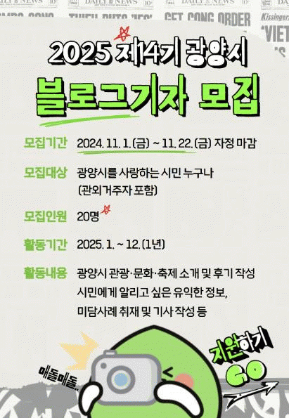 [ÀÚÄ¡Àú³Î]±¤¾ç½Ã´Â ½ÃÁ¤À» »ý»ýÇÏ°Ô ¾Ë¸± ¡®2025³âµµ Á¦14±â ±¤¾ç½Ã ºí·Î±×±âÀÚ´Ü¡¯À» ¸ðÁýÇÑ´Ù°í ¾Ë·È´Ù.