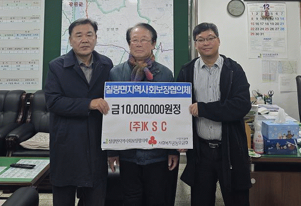 ÁÖ½Äȸ»ç KSCÀÇ ±è»óÈñ ´ëÇ¥°¡ Ãֱ٠ĥ·®¸é»ç¹«¼Ò¿¡¼ Ä¥·®¸é Áö¿ª»çȸº¸ÀåÇùÀÇü¸¦ ÅëÇØ ÀÌ¿ôµ½±â ¼º±Ý 1,000¸¸ ¿øÀ» ±âŹÇß´Ù.