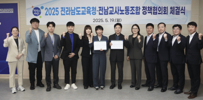 [ÀÚÄ¡Àú³Î]Àü¶ó³²µµ±³À°Ã»°ú Àü³²±³»ç³ëµ¿Á¶ÇÕ(À§¿øÀå ±è½Å¾È)Àº 19ÀÏ Àü¶ó³²µµ±³À°Ã» ¼ÒȸÀǽǿ¡¼ ³ë»ç ¾çÃø °ü°èÀÚµéÀÌ Âü¼®ÇÑ °¡¿îµ¥ ¡®2025³â Á¤Ã¥ÇùÀÇȸ ü°á½Ä¡¯À» °¡Á³´Ù.