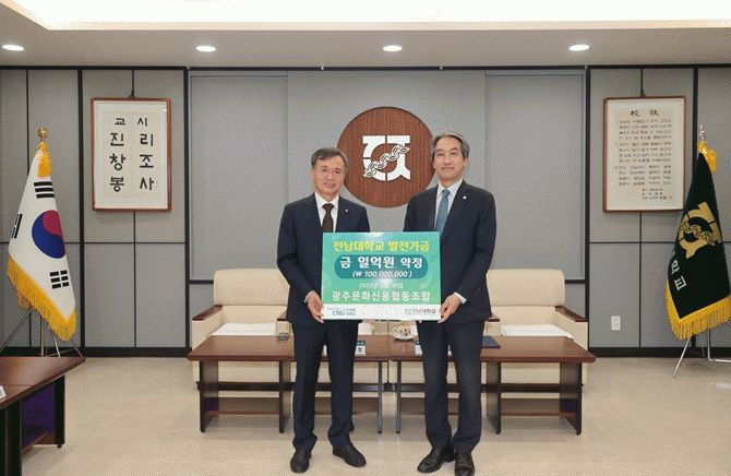 [ÀÚÄ¡Àú³Î]Àü³²´ëÇб³(ÃÑÀå À̱ٹè)´Â ±¤ÁÖ¹®È½Å¿ëÇùµ¿Á¶ÇÕ(ÀÌ»çÀå °í¿µÃ¶)ÀÌ ESG ´ëÇйßÀü±â±ÝÀ¸·Î 1¾ï ¿øÀ» ¾àÁ¤Çϰí, ±× ù ±âʱÝÀ¸·Î 1õ¸¸ ¿øÀ» Àü´ÞÇß´Ù°í 15ÀÏ ¹àÇû´Ù.