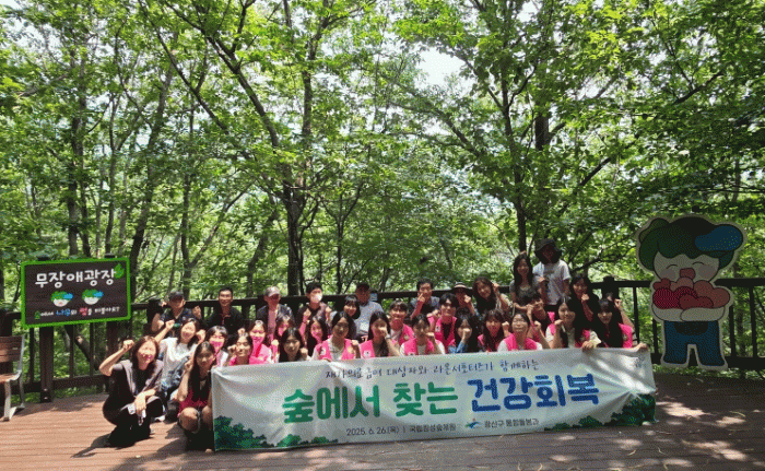 [ÀÚÄ¡Àú³Î]±¤ÁÖ ±¤»ê±¸°¡ Áö³ 26ÀÏ Àç°¡ÀÇ·á±Þ¿©»ç¾÷ ´ë»óÀÚµé°ú ÇÔ²² ±¹¸³À强½£Ã¼¿ø¿¡¼ ¡®½£¿¡¼ ã´Â °Ç°È¸º¹¡¯ ÇÁ·Î±×·¥À» ¿î¿µÇß´Ù.