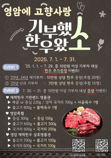 °íÇâ»ç¶û±âºÎ·Î ¿µ¾Ï±º¿¡ ¸¶À½À» ÀüÇÑ ±âºÎÀÚµéÀÇ ¶æ¿¡ º¸´äÇϱâ À§ÇÑ À̹ø À̺¥Æ®´Â Å©°Ô 2°³ ºÐ¾ß·Î ³ª´²Á® ÀÖ´Ù.