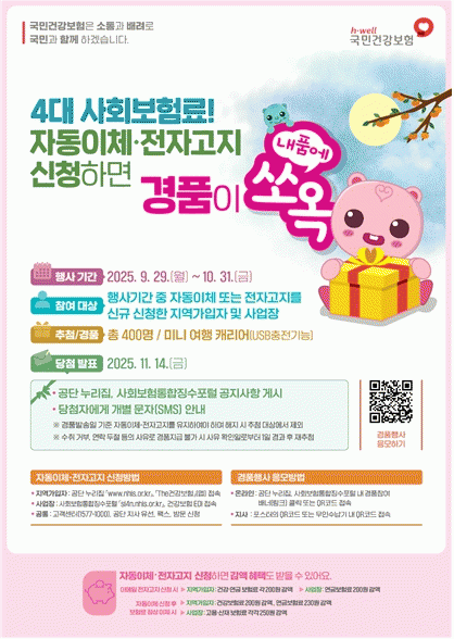 °æÇ°Çà»ç Âü¿©¸¦ ¿øÇÏ´Â °æ¿ì °ø´Ü ´©¸®Áý ¶Ç´Â »çȸº¸ÇèÅëÇÕ¡¼öÆ÷Åп¡¼ ¡®°æÇ°Çà»ç ÀÀ¸ð ¹öư¡¯À» ´©¸£°Å³ª °ø´Ü Áö»ç ¹æ¹® ½Ã ÀÚµ¿ÀÌü È«º¸ Æ÷½ºÅÍÀÇ ¡®Å¥¾Ë(QR)Äڵ塯¸¦ ÅëÇØ ¼³¹®À» ÀÛ¼º(°³ÀÎÁ¤º¸ ¼öÁý.ÀÌ¿ë.Á¦°ø µ¿ÀÇ)Çϸé ÀÚµ¿À¸·Î Á¢¼öµÈ´Ù.