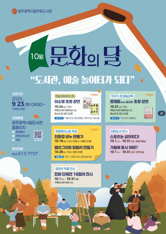 [ÀÚÄ¡Àú³Î]±¤ÁÖ±¤¿ª½Ã¸³µµ¼°ü(¹«µî¡¤»çÁ÷¡¤»ê¼ö)Àº ¡®10¿ù ¹®ÈÀÇ ´Þ¡¯À» ¸Â¾Æ °¡Á·µéÀÌ µµ¼°ü¿¡¼ ÇÔ²² Áñ±æ ¼ö ÀÖ´Â °¿¬, Àü½Ã, üÇè ÇÁ·Î±×·¥ µî ¡®µµ¼°ü, ¿¹¼ú ³îÀÌÅͰ¡ µÇ´Ù¡¯ Çà»ç¸¦ ¿î¿µÇÑ´Ù.