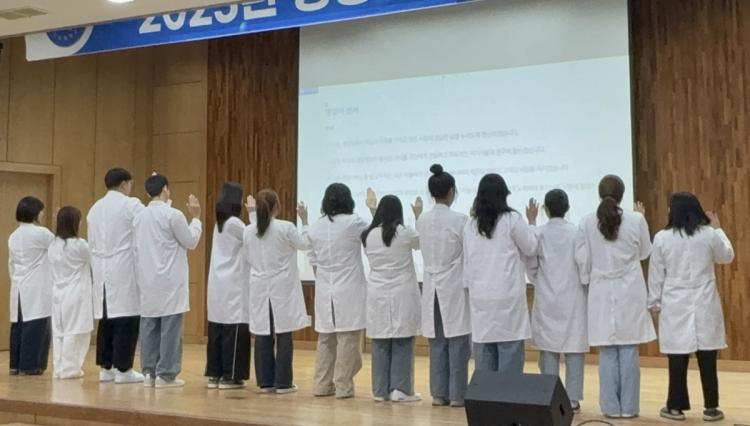 À̳¯ ¼±¼½Ä¿¡´Â ¿µ¾ç»ç ±¹°¡°í½Ã¸¦ ¾ÕµÐ 4Çгâ ÀçÇлýµéÀÌ ±¹¹Î °Ç° ÁõÁø°ú Àü¹®Á÷ À±¸®¿¡ ´ëÇÑ Ã¥ÀÓ ÀǽÄÀ» ´ÙÁö´Â ¶æ±íÀº ½Ã°£À» °¡Áøµ¥ À̾î, ÇöÀå¿¡¼ Ȱ¾à ÁßÀÎ ¼±¹è ¿µ¾ç»çµéÀÌ ÀÀ¿øÀÇ ¸Þ½ÃÁö¸¦ ÀüÇϸç ÈĹèµéÀ» °Ý·ÁÇß´Ù.