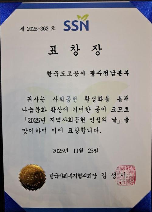 Çѱ¹µµ·Î°ø»ç ±¤ÁÖÀü³²º»ºÎ °ü°èÀÚ´Â ¡°Áö¿ª»çȸ¿Í µ¿¹Ý ¼ºÀåÀ» ¸ñÇ¥·Î ´Ù¾çÇÑ »çȸ°øÇå Ȱµ¿À» Áö¼ÓÇØ ¿Â ³ë·ÂÀÌ °á½ÇÀ» ¸Î¾î ±â»Ú´Ù¡±¸ç ¡°¾ÕÀ¸·Îµµ Áö¿ª°ú ÇÔ²²ÇÏ´Â °ø°ø±â°üÀ¸·Î¼ ESG ±â¹ÝÀÇ »çȸÀû °¡Ä¡ âÃâ¿¡ ´õ¿í Èû¾²°Ú´Ù¡±°í ¸»Çß´Ù.
