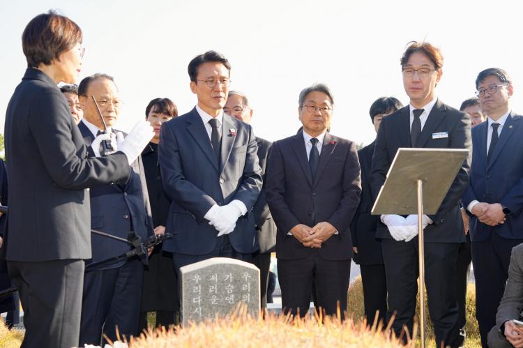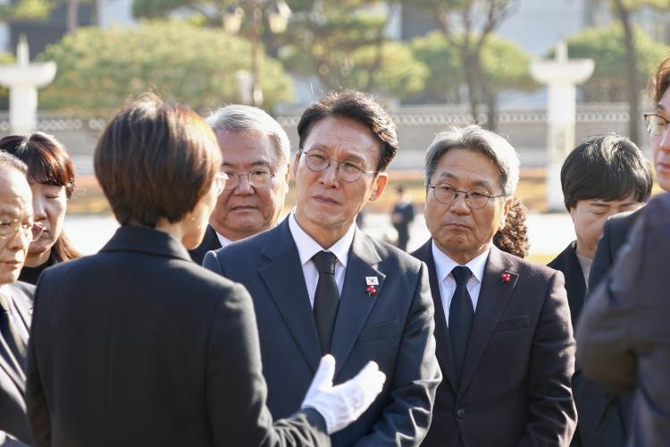 [ÀÚÄ¡Àú³Î] °±âÁ¤ ±¤ÁÖ±¤¿ª½ÃÀåÀÌ 26ÀÏ ¿ÀÈÄ ±è¹Î¼® ±¹¹«ÃѸ®¿Í ÇÔ²² ±¹¸³5‧18¹ÎÁÖ¹¦Áö¸¦ ã¾Æ Âü¹èÇϰí ÀÖ´Ù. /±¤ÁÖ±¤¿ª½Ã Á¦°ø