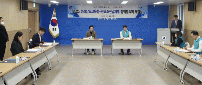 [ÀÚÄ¡Àú³Î]Àü¶ó³²µµ±³À°Ã»°ú Àü±¹±³Á÷¿ø³ëµ¿Á¶ÇÕ Àü³²ÁöºÎ´Â 28ÀÏ Àü¶ó³²µµ±³À°Ã» ÁßȸÀǽǿ¡¼ ³ë»ç ¾çÃø °ü°èÀÚµéÀÌ Âü¼®ÇÑ °¡¿îµ¥ ¡®2025³â Á¤Ã¥ÇùÀÇȸ ü°á½Ä¡¯À» °¡Á³´Ù.