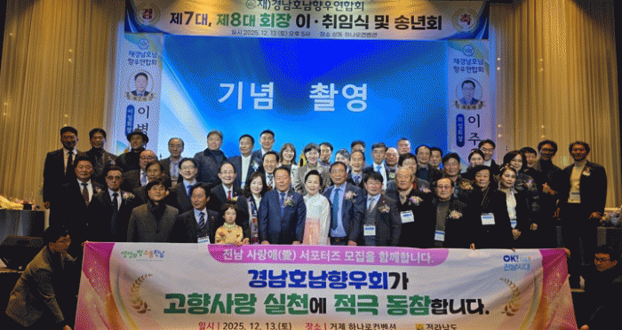 [ÀÚÄ¡Àú³Î]Àü¶ó³²µµ´Â 13ÀÏ °æ³² °ÅÁ¦ Çϳª·ÎÄÁº¥¼Ç¿¡¼ ¿¸° °æ³²È£³²Çâ¿ì¿¬ÇÕȸ Á¦8´ë ȸÀå ÃëÀӽĿ¡ Âü¼®ÇØ °íÇâ»ç¶û ½Çõ Ä·ÆäÀÎÀ» ÆîÄ¡¸ç Çâ¿ìȸ¿ÍÀÇ ±³·ù¿Í Çù·ÂÀ» °ÈÇß´Ù.