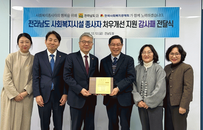 [ÀÚÄ¡Àú³Î]Àü¶ó³²µµ´Â »çȸº¹Áö½Ã¼³ Á¾»çÀÚ Ã³¿ì°³¼±¿¡ ±â¿©ÇÑ °ø·Î¸¦ ÀÎÁ¤¹Þ¾Æ Çѱ¹»çȸº¹Áö°øÁ¦È¸·ÎºÎÅÍ °¨»çÆÐ¸¦ ¹Þ¾Ò´Ù°í ¹àÇû´Ù.