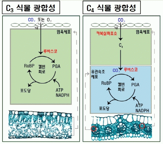 C3¿Í C4 ½Ä¹°ÀÇ ±¤ÇÕ¼º °æ·Î Â÷ÀÌ ¸ð½Äµµ