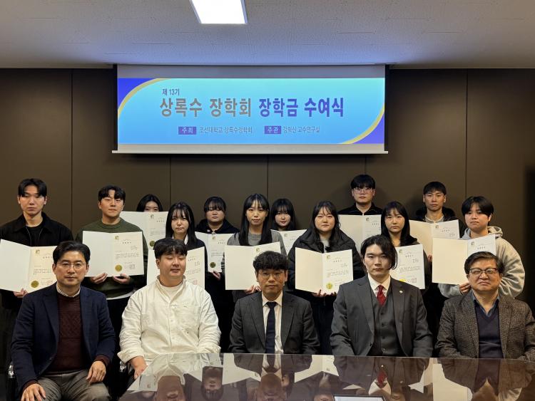[ÀÚÄ¡Àú³Î] Á¶¼±´ëÇб³(ÃÑÀå ±èÃἺ) ¹ýÇаú »ó·Ï¼ö ÀåÇÐȸ°¡ Áö³ 12¿ù 10ÀÏ ¹ý°ú´ëÇÐ 6Ãþ¿¡¼ ¡®Á¦13±â »ó·Ï¼ö ÀåÇÐ±Ý ¼ö¿©½Ä¡¯À» °³ÃÖÇϰí, ÃÑ 11¸íÀÇ ÀåÇлý¿¡°Ô ÀåÇбÝÀ» Àü´ÞÇß´Ù.