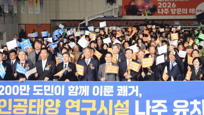 ¡®´ëÇѹα¹ ¿¡³ÊÁö ¼öµµ Àü³² ³ªÁÖ, ÀΰøÅ¾çÀ» ǰ´Ù!¡¯¶ó´Â ½½·Î°Ç ¾Æ·¡ ¿¸° À̳¯ Çà»ç¿¡´Â °À§¿ø Àü³²µµ °æÁ¦ºÎÁö»ç, À±º´Å ³ªÁÖ½ÃÀå, ½ÅÁ¤ÈÆ ±¹È¸ÀÇ¿ø, Áö¿ª ´ëÇС¤»ê¾÷°è¡¤¿¬±¸°è Àλç¿Í À¯Ä¡À§¿øÈ¸ À§¿ø, µµ¹Î µî 900¿© ¸íÀÌ Âü¼®Çß´Ù. À̵éÀº ÀΰøÅÂ¾ç ¿¬±¸½Ã¼³ À¯Ä¡ °¨°ÝÀ» ÇÔ²² ³ª´³´Ù. °¡¼ö ÃàÇϰø¿¬ µîµµ À̾îÁ® Çà»ç ºÐÀ§±â¸¦ ´õ¿í ¶ß°Ì°Ô ´Þ±É´Ù.