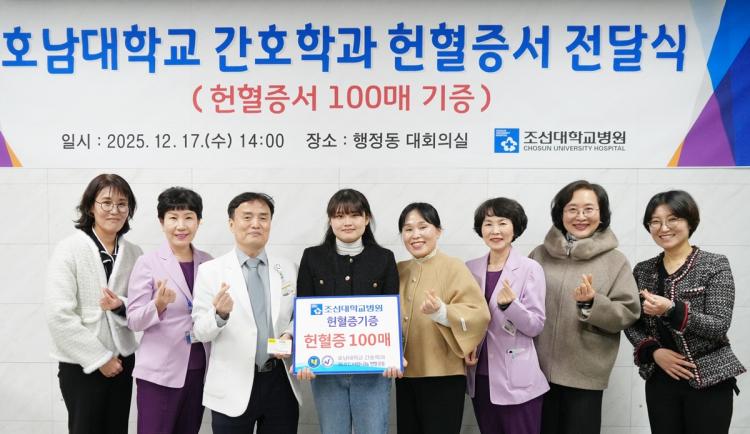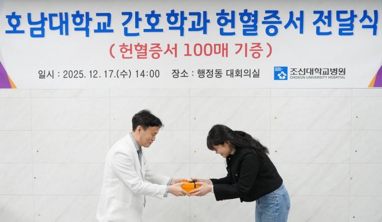 È£³²´ë °£È£Çаú, Á¶¼±´ëº´¿ø¿¡ ÇåÇ÷Áõ 1¹éÀå Àü´Þ ¡°»ç¶û³ª´® ½Çõ¡±