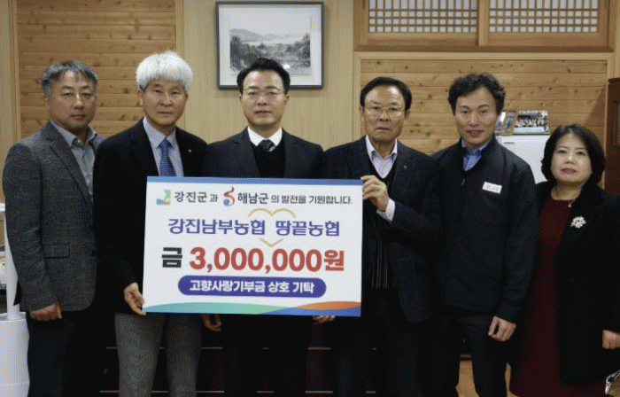 [ÀÚÄ¡Àú³Î]°Áø³²ºÎ³óÇù°ú ÇØ³² ¶¥³¡³óÇù ÀÓÁ÷¿øµéÀÌ Áö³ 17ÀÏ °Áø±ºÃ»À» ã¾Æ °íÇâ»ç¶û±âºÎ±Ý 300¸¸¿øÀ» »óÈ£ Áö¿ª¿¡ ±âºÎÇß´Ù.