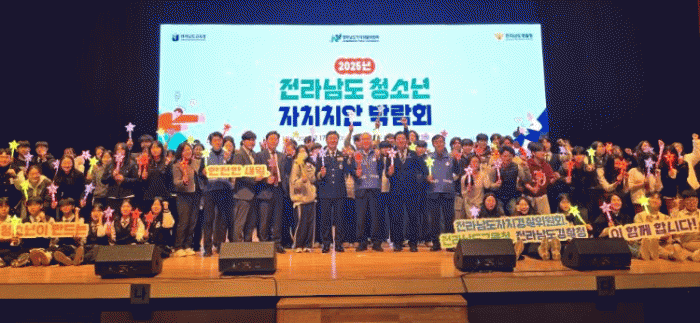 Çà»ç¿¡¼± Àü³²Áö¿ª û¼Ò³â 200¿© ¸í°ú Àü³²µµ±³À°Ã», Àü³²µµ°æÂûû °ü°èÀÚ µîÀÌ ÇÔ²²ÇÑ °¡¿îµ¥ ¸ñÆ÷¾ÖÇâÁßÇб³ ÇлýµéÀÇ ½ÄÀü °ø¿¬, û¼Ò³â ÀÚÄ¡°æÂûÇб³¿Í ÀÚÄ¡°æÂû ÇÁ·ÎÁ§Æ®ÆÀÀÇ ÇÑÇØ ¼º°ú ¹ßÇ¥ µîÀÌ ÁøÇàµÆ´Ù.