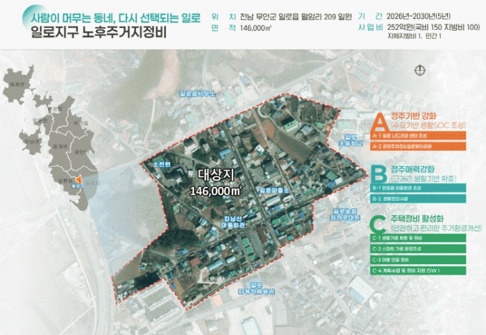 ÀÏ·ÎÀ¾ ¿ù¾Ï¸® ÀÏ¿ø 146,000§³ÀÇ µµ½ÃÀç»ý Ȱ¼ºÈ Áö¿ª¿¡ 2026³âºÎÅÍ 2030³â±îÁö 5³â°£, 251¾ï ¿ø(±¹ºñ 150, ±ººñ 101)À» ÅõÀÔÇÏ¿© ÀÏ·Î ³ªµå¸®¿Í ¼¾ÅÍ, °ø¿µÁÖÂ÷Àå & ÀϷθÂÀ̰ø¿ø, µµ½Ã°èȹµµ·Î °³¼³, ¸¶À»ÁÖÂ÷Àå Á¶¼º ¹× ¾È±æ Á¤ºñ, Áý¼ö¸® Áö¿ø µîÀ» ÃßÁøÇÏ°Ô µÈ´Ù.