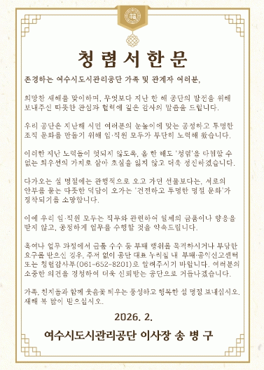 ¿©¼ö½Ãµµ½Ã°ü¸®°ø´Ü, ¼³ ¸íÀý ¾ÕµÎ°í ¡®Ã»·Å¼Çѹ®¡¯ ¹ß¼Û