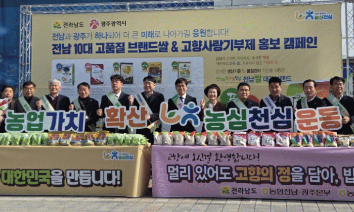 [ÀÚÄ¡Àú³Î]Àü¶ó³²µµ´Â 13ÀÏ ±¤ÁÖ¼ÛÁ¤¿ª¿¡¼ ³óÇù Àü³²¡¤±¤ÁÖ Áö¿ªº»ºÎ, ±¤ÁÖ±¤¿ª½Ã, RPC ±¤ÁÖÀü³²ÇùÀÇȸ¿Í ÇÔ²² ±Í¼º¡¤±Í°æ°´¿¡°Ô Àü³²¡¤±¤ÁÖ ºê·£µå ½Ò°ú °íÇâ»ç¶û±âºÎÁ¦ È«º¸ Ä·ÆäÀÎÀ» ÆîÃÆ´Ù.