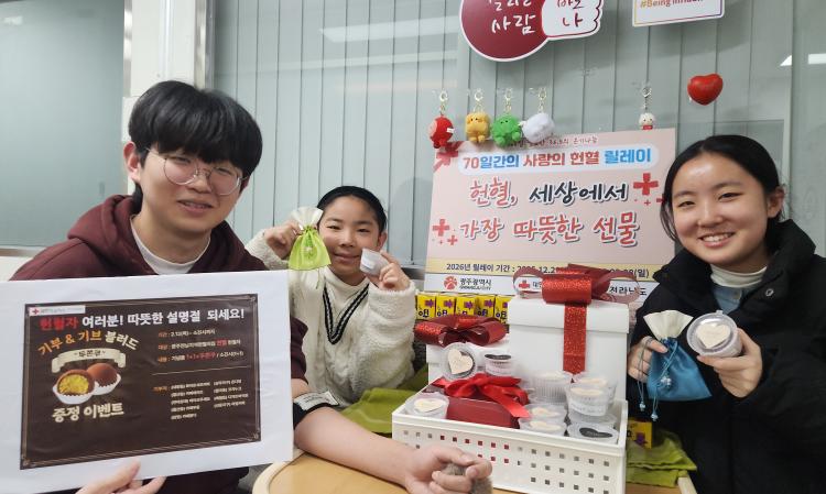 ±¤ÁÖÀü³²Ç÷¾×¿ø ¹ÚÁø¼º ¿øÀåÀº ¡°±¤ÁÖÀü³² Ç÷¾×¼ö±Þ ¾ÈÁ¤È¸¦ À§ÇØ µÎÂËÄí¸¦ ±âºÎÇØÁֽŠÁö¿ª Ä«Æä ¼Ò»ó°øÀε鿡°Ô Áø½ÉÀ¸·Î °¨»çÀÇ ¸»¾¸À» ÀüÇÑ´Ù¡±¸ç ¡°¼³¸íÀý ±â°£ °¡Á·, Ä£Áö, Ä£±¸µé°ú ÇÔ²² ÇåÇ÷ÀÇÁýÀ» ¸¹ÀÌ ¹æ¹®ÇØ ÇåÇ÷·Î µû½ºÇÑ Á¤À» ³ª´©´Â ¹®È°¡ Áö¿ª ³» È®»êµÇ¾úÀ¸¸é ÁÁ°Ú´Ù ¡±°í ¸»Çß´Ù.