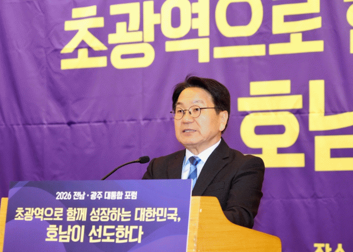 [ÀÚÄ¡Àú³Î]±¤ÁÖ±¤¿ª½Ã´Â Àü¶ó³²µµ¿Í ÇÔ²² 19ÀÏ ¿ÀÈÄ ¼¿ï ±¹È¸µµ¼°ü ´ë°´ç¿¡¼ ¡®Ãʱ¤¿ªÀ¸·Î ÇÔ²² ¼ºÀåÇÏ´Â ´ëÇѹα¹, È£³²ÀÌ ¼±µµÇÑ´Ù¡¯¸¦ ÁÖÁ¦·Î ¡®2026 Àü³²¡¤±¤ÁÖ ´ëÅëÇÕ Æ÷·³¡¯À» °³ÃÖÇß´Ù.