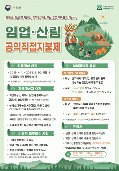 ÀÓ¾÷Á÷ºÒÁ¦´Â »ê¸²ÀÇ °øÀÍÀû ±â´ÉÀ» ÁõÁøÇϰí ÀÓ¾÷ÀÎÀÇ ¼Òµæ ¾ÈÁ¤À» µµ¸ðÇϱâ À§ÇØ ¸¶·ÃµÈ Á¦µµ´Ù. Áö±Þ ´ë»ó »êÁö¿¡¼ ´ëÃß¡¤È£µÎ¡¤¹ã µî Àӻ깰À» »ý»êÇϰųª, ³ª¹«¸¦ ½É°í °¡²Ù´Â À°¸²¾÷¿¡ Á¾»çÇÏ´Â ÀÓ¾÷Àο¡°Ô Áö±ÞÇÑ´Ù.