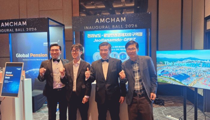 [ÀÚÄ¡Àú³Î]±¤¾ç¸¸±Ç°æÁ¦ÀÚÀ¯±¸¿ªÃ»Àº Àü¶ó³²µµ¿Í ÇÔ²² Áö³ 20ÀÏ ¼¿ï ±×·£µå ÇÏ¾æÆ® È£ÅÚ¿¡¼ ¿¸° ¡®ÁÖÇѹ̱¹»ó°øÈ¸ÀǼÒ(¾ÏÂü, AMCHAM) ÀÌ»çÁø ÃëÀÓ½Ä(Inaugural Ball 2026)¡¯¿¡ Âü°¡ÇØ ¹Ì±¹°è ±Û·Î¹ú ±â¾÷À» ´ë»óÀ¸·Î ÅõÀÚÀ¯Ä¡ Ȱµ¿À» Àü°³Çß´Ù.
