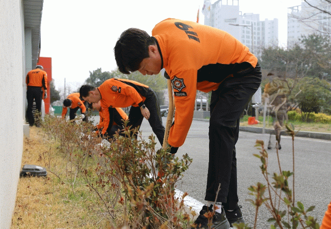 °Áø¼Ò¹æ¼ ¼Ò¹æ°ø¹«¿øµéÀÌ Á¦81Áֳ⠽ĸñÀÏÀ» ¸Â¾Æ û»ç ÁÖº¯¿¡¼ öÂß µî ¼ö¸ñÀ» ½ÄÀçÇϸç ȯ°æÁ¤ºñ Ȱµ¿À» ÆîÄ¡°í ÀÖ´Ù.