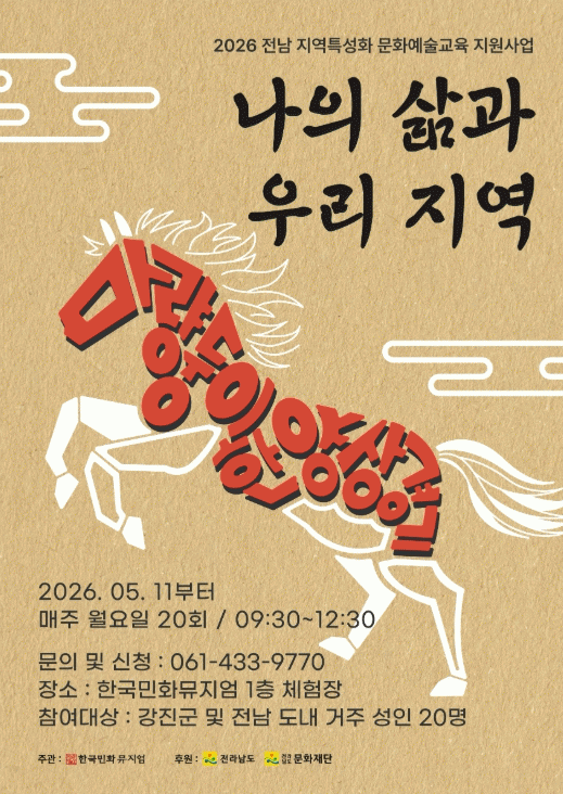 [ÀÚÄ¡Àú³Î] °Áø±º ´ë±¸¸é¿¡ ÀÖ´Â Çѱ¹¹ÎȹÂÁö¾öÀÌ ¡®2026 Áö¿ªÆ¯¼ºÈ ¹®È¿¹¼ú±³À° Áö¿ø»ç¾÷¡¯ ¼±Á¤¿¡ µû¶ó ¿À´Â 5¿ù 11ÀϺÎÅÍ ¡®³ªÀÇ »î°ú ¿ì¸® Áö¿ª-¸¶·®µÕÀÌÀÇ ÇÑ¾ç »ó°æ±â¡¯ ÇÁ·Î±×·¥ ¿î¿µÀ» ½ÃÀÛÇϸç Âü°¡ÀÚ¸¦ ¸ðÁýÇÑ´Ù.