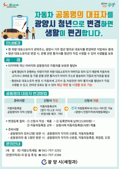 ±¤¾ç½Ã, û³â ¸íÀÇ·Î Â÷·® ´ëÇ¥ÀÚ º¯°æÇϼ¼¿ä!